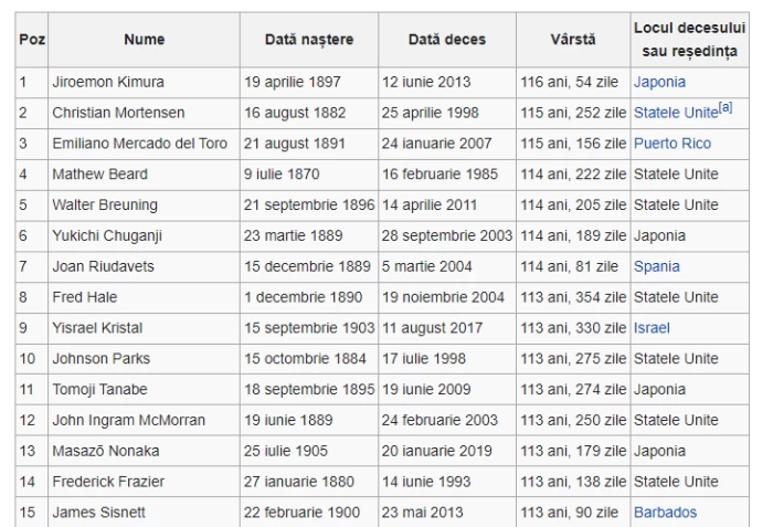Recordul de longevitate este deţinut în continuare de franţuzoaica Jeanne Calment, care a trăit 122 de ani şi 164 de zile şi care a încetat din viaţă în 1997, potrivit Guinness World Records.