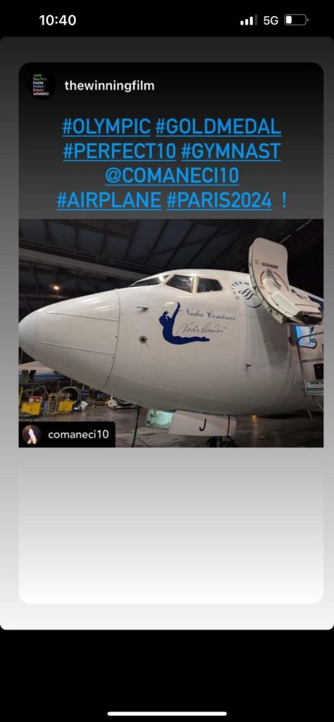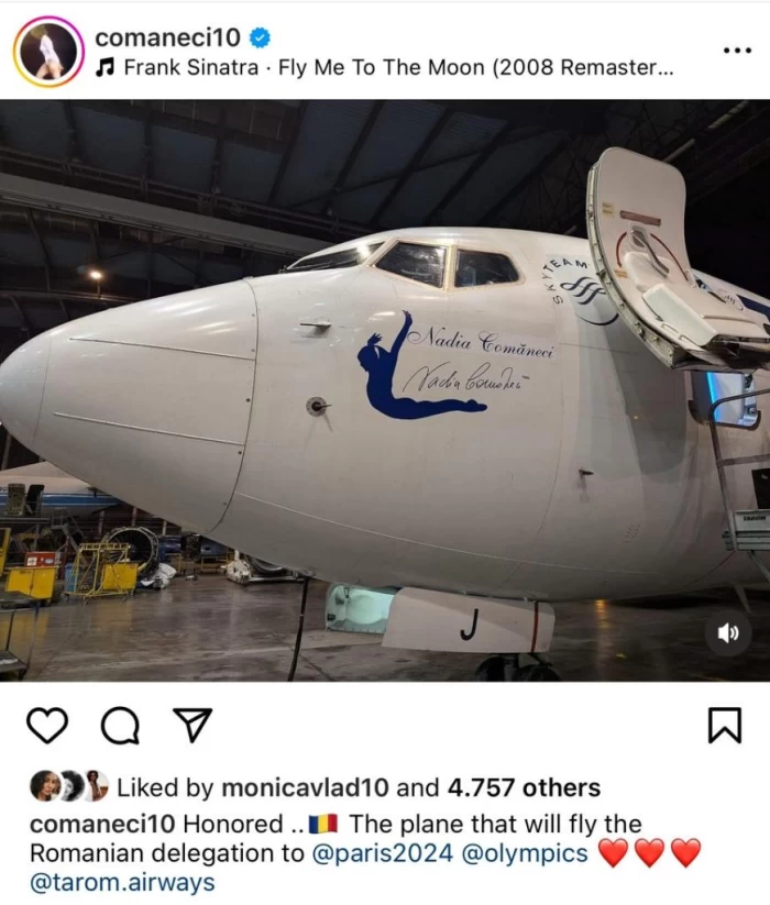 Potrivit sursei citate, Nadia Comăneci şi TAROM au încheiat un parteneriat prin care numele celebrei gimnaste va fi asociat cu o aeronavă B737-800 din flota companiei. Aeronava denumită ”Nadia Comăneci” va transporta sportivii români la Jocurile Olimpice de la Paris şi va continua să deservescă pasagerii companiei.