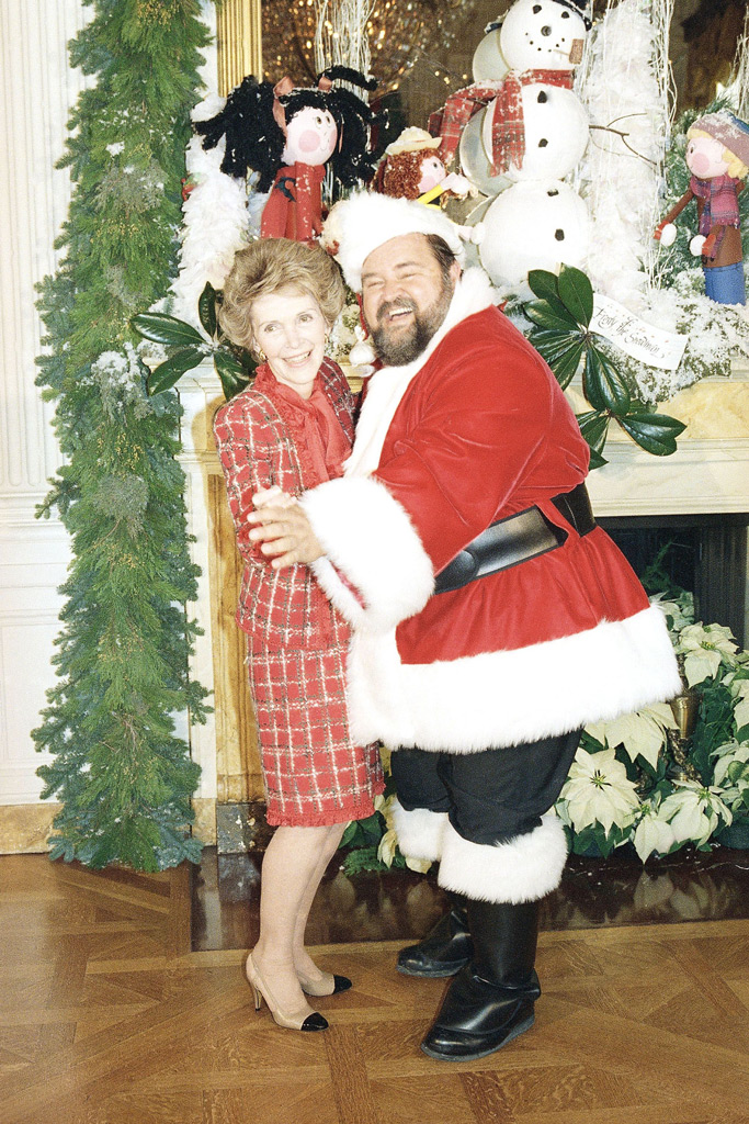 Nancy Reagan a sărbătorit într-un mod unic și care nu a fost copiat de alte soții de președinți: a invitat prieteni actori pentru a-l juca pe Moș Crăciun la petrecerea ei de dezvăluire a decorațiunilor, inclusiv Dom Deluise și Mr. T!