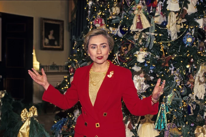Barbara Bush și Hillary Clinton au fost primele care au ales să împodobească bogat și nu minimalist bradul, alegând îngeri supradimensionați, ornamente elaborate, brazi mult mai mari și cu o estetică încărcată.