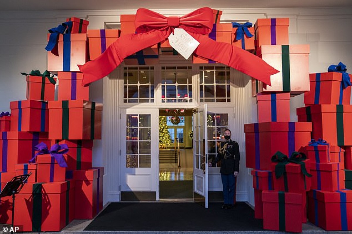Jill Biden a dezvăluit decorul de Crăciun al Casei Albe, care evidențiază „Cadourile din inimă” care unesc țara, inclusiv credința, familia, dar și serviciul adus țării, aducând un omagiu lucrătorilor din prima linie care au trudit în pandemia de coronavirus.