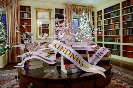 Fosta primă doamnă Michelle Obama și-a marcat primul Crăciun la Casa Albă cu culori mai strălucitoare, alegând ornamente îndrăznețe, îmbogățind spectaculos fiecare cameră a celebrei clădiri, făcând petreceri de unde nu lipseau cățeii familiei Sunny și Bo, spre deliciul copiilor.
