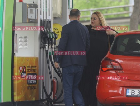 Tot de la benzinărie, cât Silvestru Șoșoacă a pus combustibil, senatoarea a coborât și a mers să cumpere câte ceva, iar la întoarcere i-a cedat locul de la volan soțului ei.