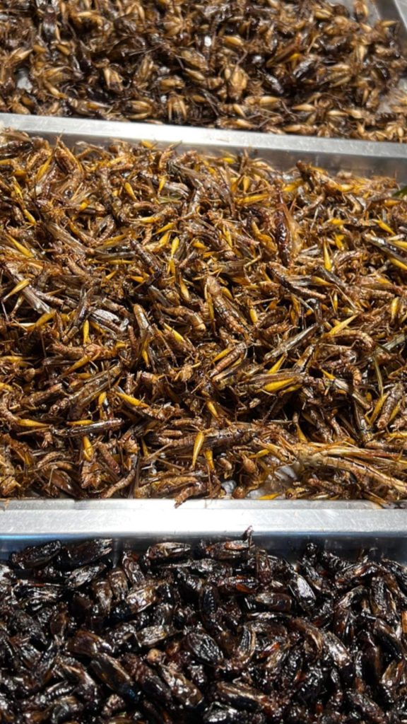 „Am ajuns exact unde-mi doream să ajung și anume într-un Night Market pentru că tot căutam asta. Acesta este un vierme și dacă nu te saturi cu viermii poți să încerci o lăcustă.”, povestește Radu Vâlcan în timp ce își delecta papilele gustative cu astfel de produse alimentare.