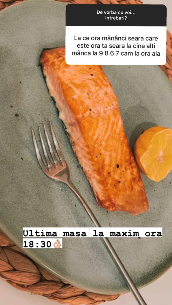 De exemplu, atunci când a fost întrebată care este ora la care mănâncă pentru ultima dată într-o zi, vedeta Antena 1 a spus că nu mai mănâncă nimic după ora 18:30. Cât despre mișcare, te invităm în continuare să vezi o serie de materiale video în care blonda exemplifică cum arată un program normal de fitness pentru ea.