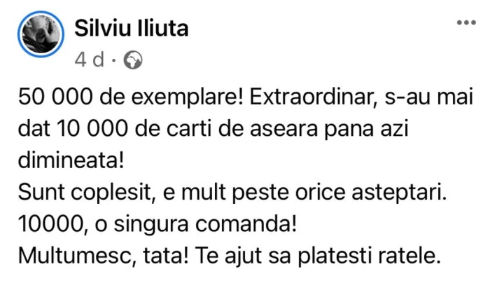 Vânzările în online stau, însă, bine! Mai bine decât cele din librărie, clar! Situația a explicat-o chiar Silviu Iliuță, tot în online.
