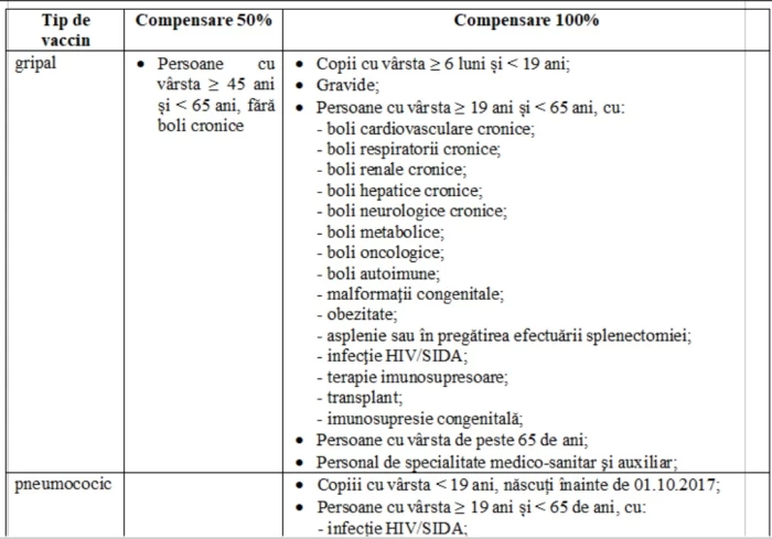 Casa Națională de Asigurări de Sănătate transmite lista condițiilor în care asigurații pot beneficia de vaccinuri gratuite și compensate în sistemul de asigurări sociale de sănătate.