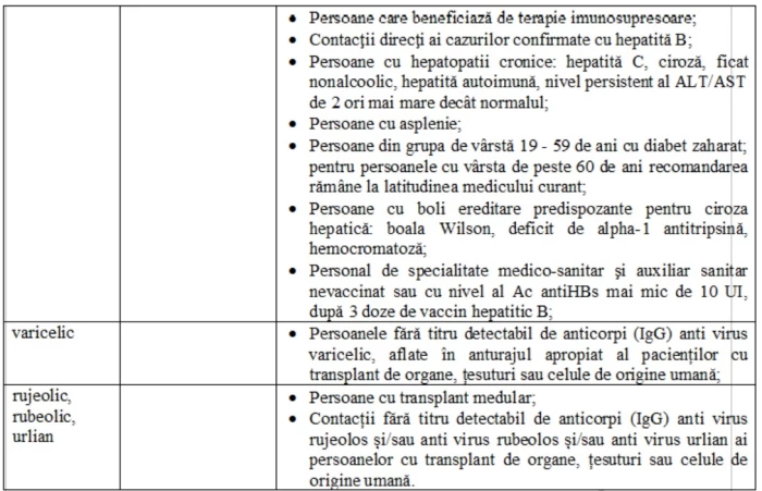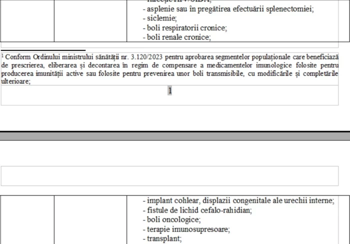 Lista este cuprinsă în Ordinul ministrului sănătății nr. 3.120/2023 pentru aprobarea segmentelor populaționale care beneficiază de prescrierea, eliberarea și decontarea în regim de compensare a medicamentelor imunologice folosite pentru producerea imunității active sau folosite pentru prevenirea unor boli transmisibile, cu modificările și completările ulterioare.