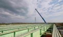 Operațiunea de montare a celor șase grinzi metalice, cu o greutate de 25 de tone fiecare, a început vineri dimineața și s-a finalizat sâmbătă după-amiază, după cum se poate vedea în imaginile disponibile.