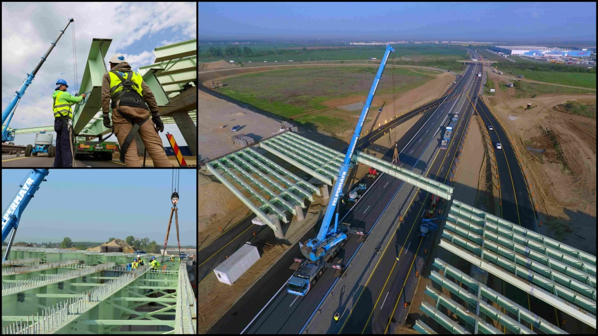 Echipa de constructori de la Aktor România, parte a Grupului Intrakat, a finalizat montarea tuturor celor șase grinzi metalice care formează secțiunea centrală a viitorului nod rutier peste autostrada A1 de lângă Ciorogârla, iar acum urmează sudura. Acest pasaj se construiește pe lotul 3 al Autostrăzii A0 București Sud.