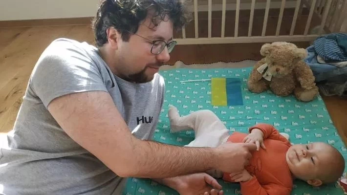 Acasa îl asteapta Timoscha, in varsta de 5 luni care a sosit cu mama si bunica sambata trecuta de la Kiev. Sunt rude ale soției sale, Kateryna, care mai are părinți în Rivne, la 200 km de Lviv.