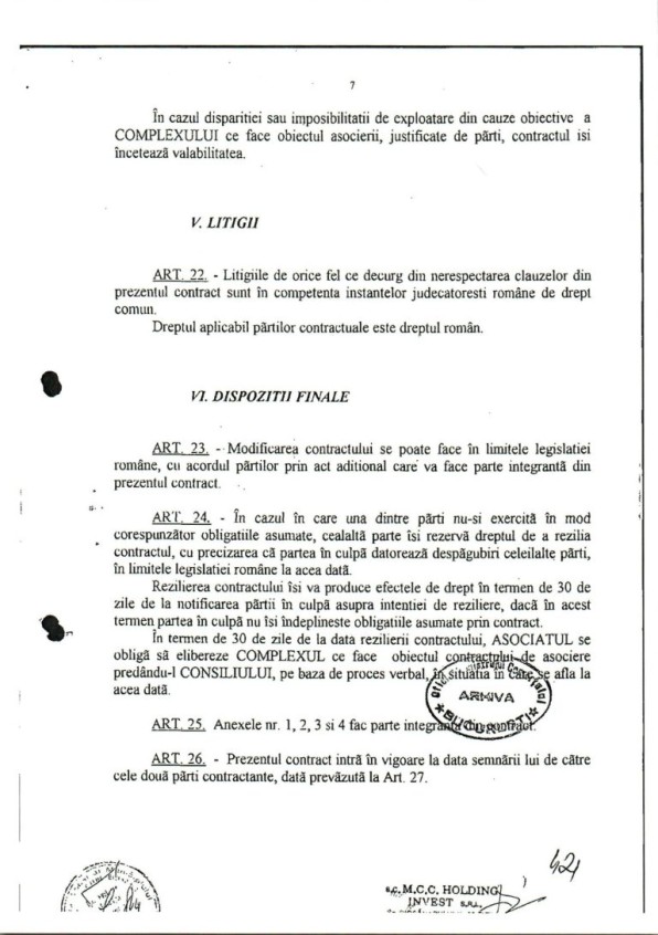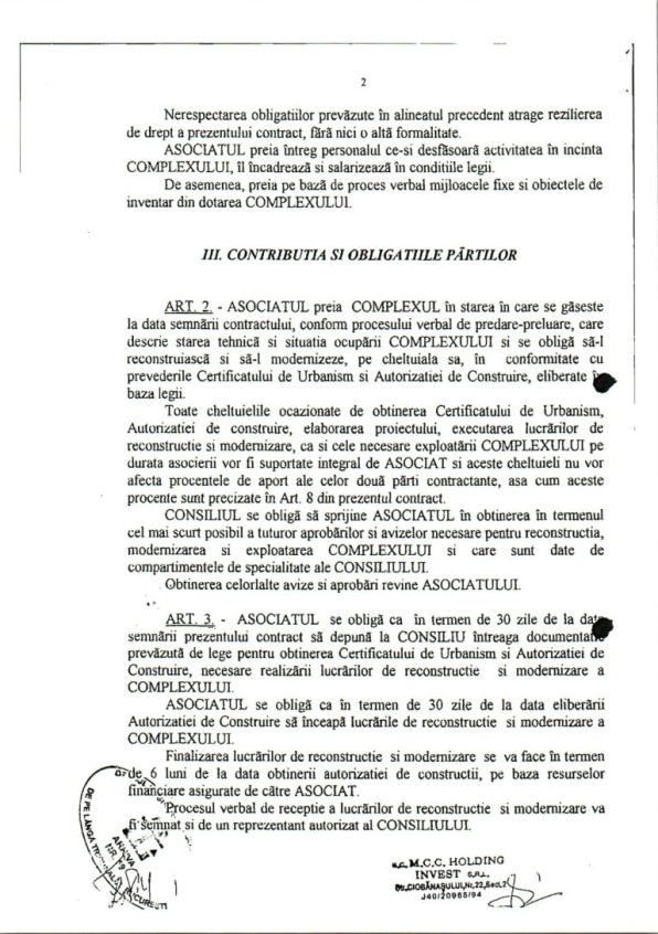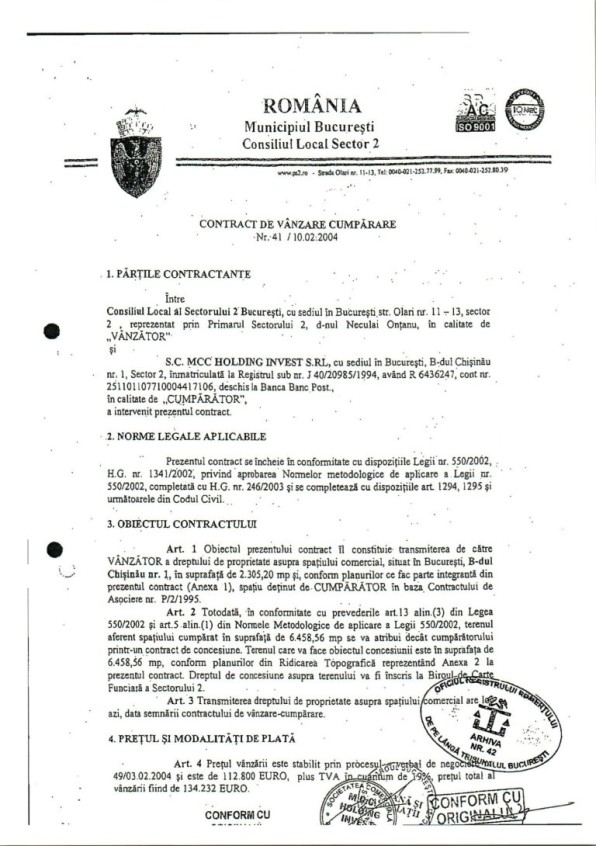 În data de 10.02.2004, prin contractul nr. 41, Onțanu i-a vândut lui Pârvu tot complexul cu o suprafață construită de 2.305,20 mp pentru infima sumă de 112.800 euro. Și tot în aceeași zi, prin contractul de concesiune nr. 1, i-a oferit tot lui Cornel Pârvu, pentru 49 de ani, dreptul de a exploata terenul în suprafață de 6.458,56 mp aferent Complexului Piața Delfinului.