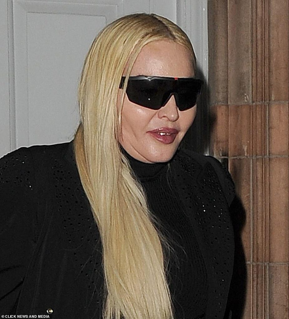 Madonna din realitate este vizibil mai corpolentă decât Madonna de pe social media, la fel cum Madonna din realitate nu este atât de… expresivă precum este Madonna din social media. Deși acoperită de o pereche de ochelari de soare și de un costum deux-piece negru, se vede clar că artista lucrează intens la felul în care arată. Ce șochează cu adevărat este chipul divei de 63 de ani care este exagerat de întins și destul de umflat, semn că medicina estetică a devenit un adevărat ritual pentru ea.