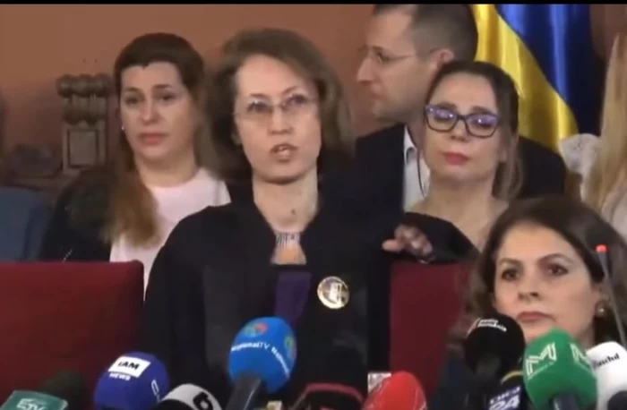 „Am venit aici ca să spun că tot ce a spus judecătorul este adevărat. Muncim foarte mult, conducerea nu ne ajută, suntem terorizați cu acțiuni disciplinare, într-o situație toxică și încordată. Nu am fost nici Ofițer acoperit, nici la Doi și un sfert, am fost toată viața magistrat”, a explicat Raluca Moroșanu, judecătoare, cu 26 de ani de magistratură, a deschis conferința de presă.