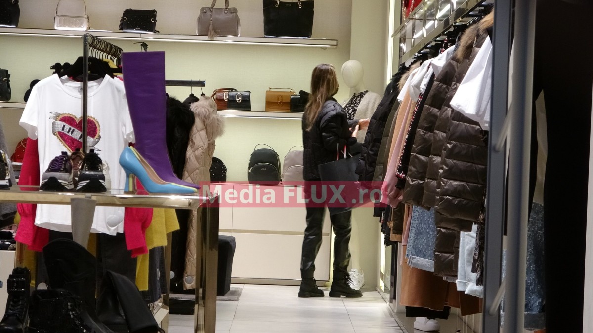 După umerașe, Diana Munteanu își apleacă atenția asupra standurilor de încălțăminte. Se uită atentă, își ridică pantalonii, se uită din nou, și pleacă mai departe, nu pare să fie convinsă că aceea este perechea ce i se potrivește.