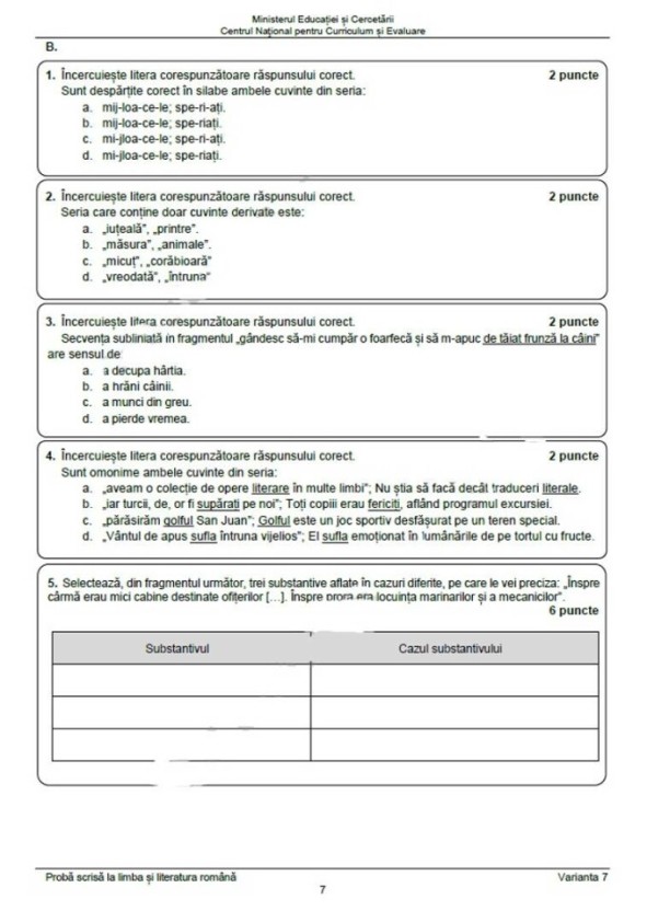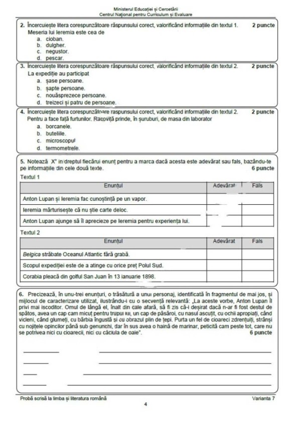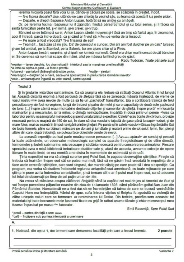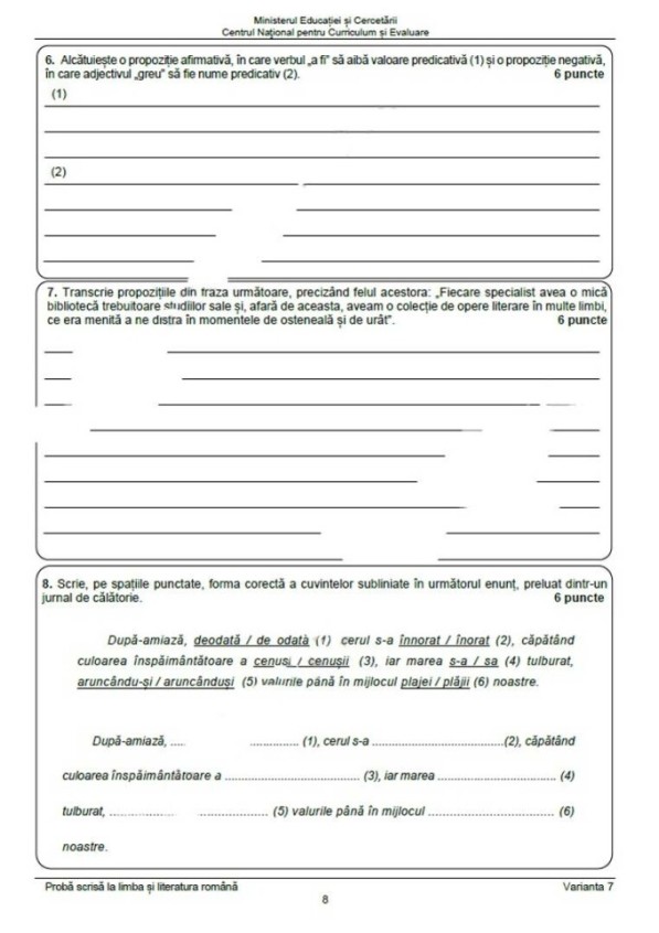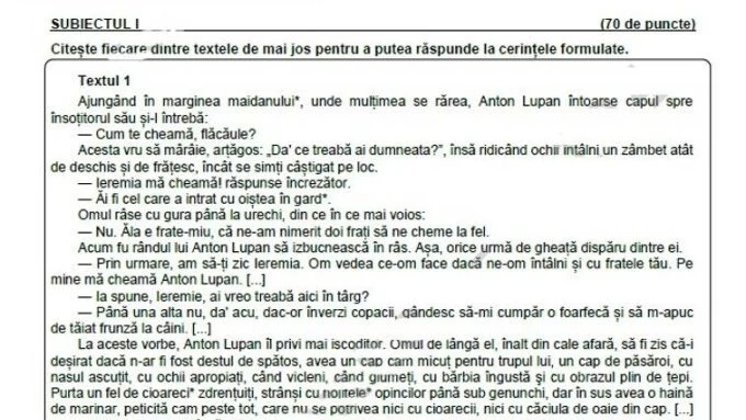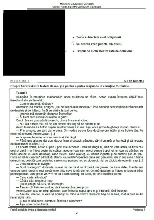 Proba scrisă la Limba Română a fost structurată pe două mari secțiuni, iar subiectele, publicate de Pro TV, au fost următoarele:
