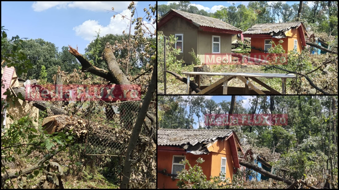 Dezastrul de după furtuna care a făcut ravagii în Pădurea Băneasa de lângă București, în cursul lunii iulie încă vizibil la mai bine de 3 săptămâni distanță! Atunci, o femeie din Otopeni a murit după ce a căzut un acoperiș pe ea. De asemenea, conform reporterilor Mediaflux, zona dintre Grădina Zoologică și Academia de Poliției este plină de copaci căzuți din cauza furtunii de atunci, unii chiar pe niște anexe din zonă.
