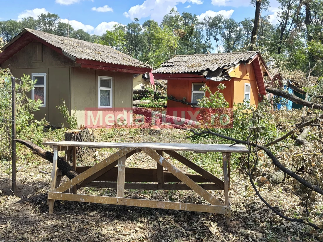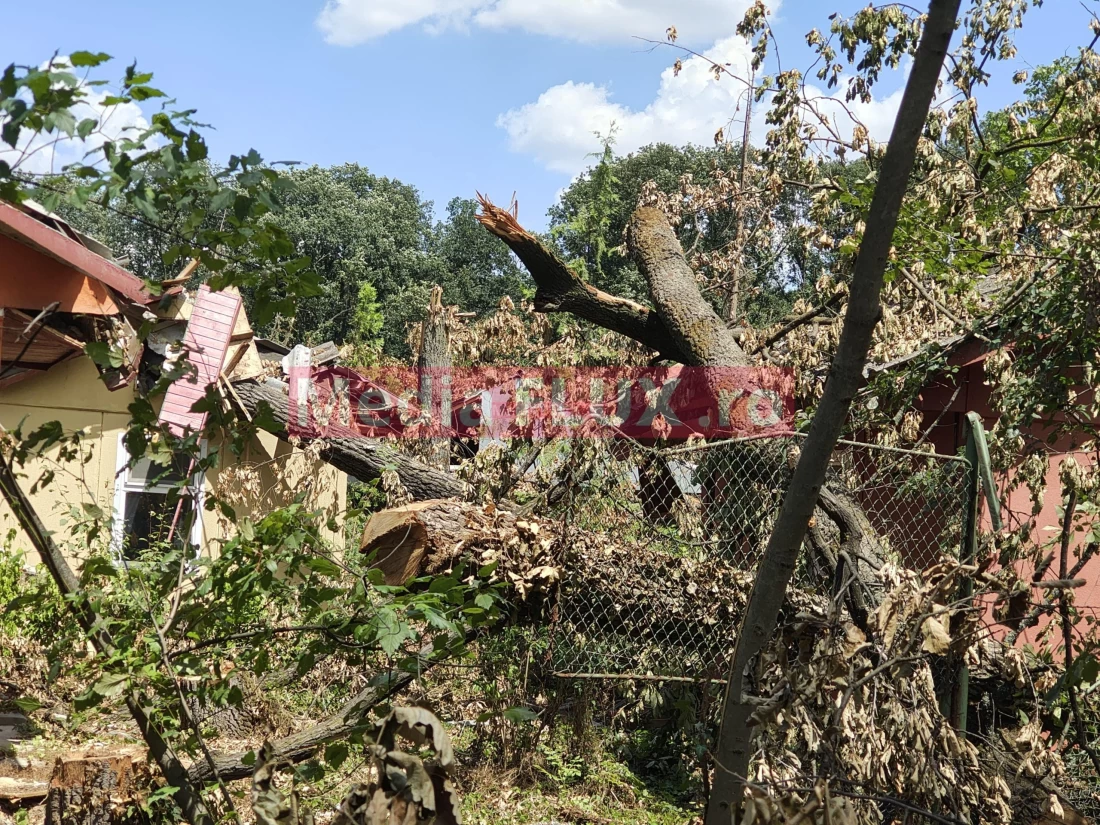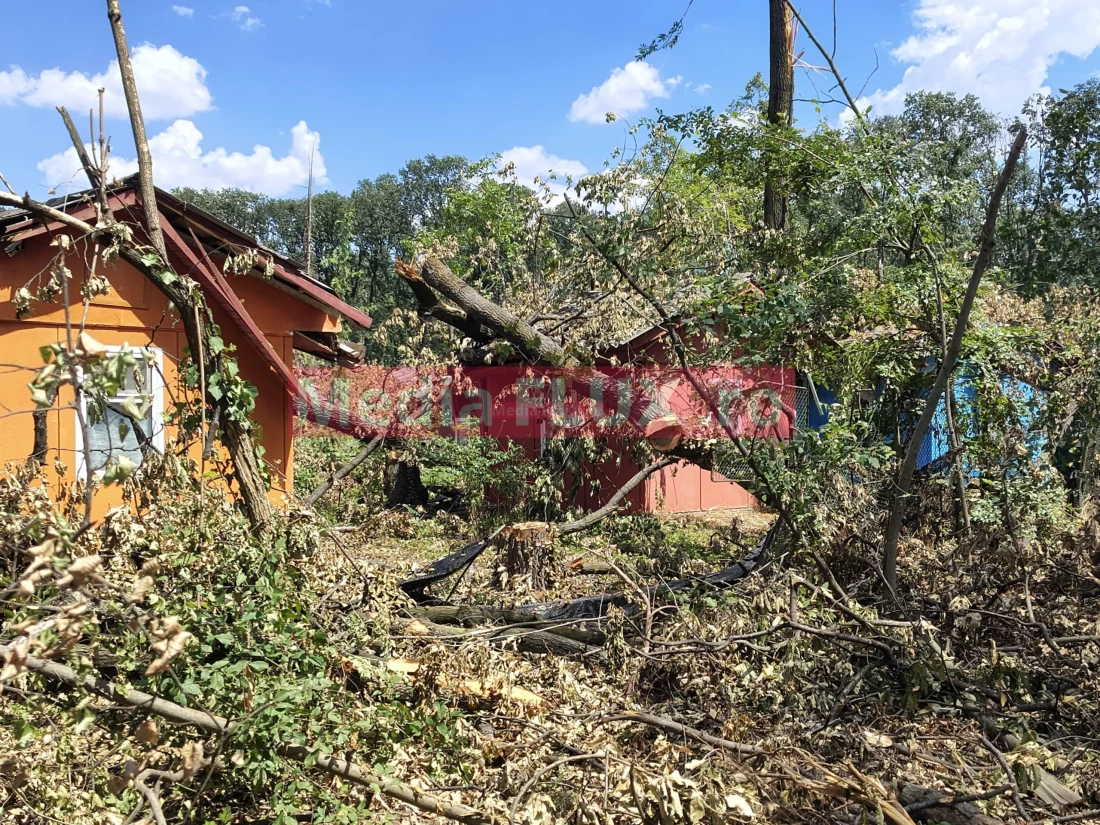 Astfel, cu toate că zona a fost curățată, iar copacii care erau pe calea de acces au fost înlăturați din drum, lemnele nu au fost încă adunate din zonă. Mai mult, un trunchi de copac este căzut chiar pe o clădire din zonă.