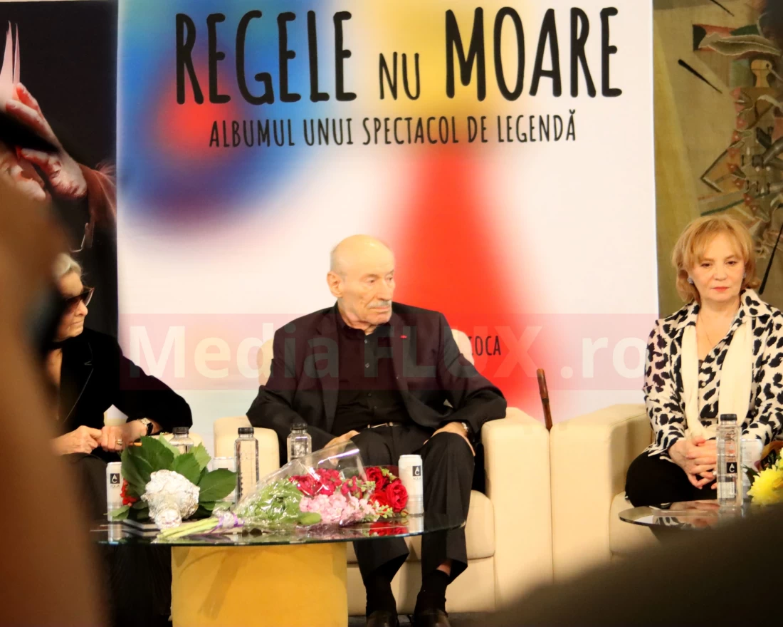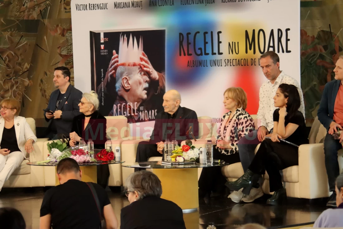 De la eveniment nu aveau cum să lipsească reporterii MediaFLUX. Ne asumăm riscul să facem un mic addendum. „Regele nu moare” este un titlu care redă mai degrabă dorința colectivă a societății, care se roagă pentru sănătatea unui alt titan al teatrului, Florin Piersic.