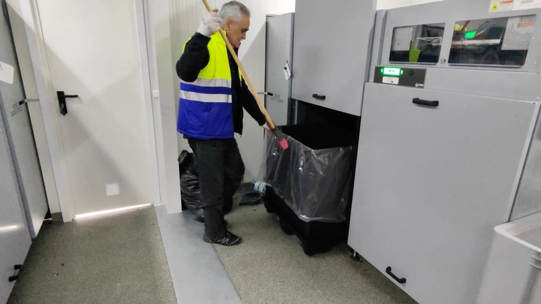 „Aparatele să funcționeze în primul rând, să fie curate întotdeauna, trebuie curățate, toți sacii care sunt în înăutru și toate pubelele trebuie golite când se umplu. Este totul automat, ni se arată exact când s-a aprins becul roșu, lada s-a umplut, sacul trebuie scos, golit, sigilat și depozitat în spate acolo pentru ridicare”, a povestit el.
