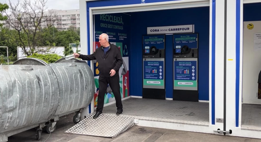 „Au început oamenii să învețe cum să le folosească. E mult de lucru, e chiar foarte mult de lucru, dar îmi place că sunt persoane cu copii mici care vin și le arată cum să procedeze. E un pic de joacă care mai încolo o să le folosească”, mi-a povestit Ciubăncan Iulian, un domn de 75 de ani din București care timp de 8 ore pe zi, de miercuri până duminică, ajută oamenii să recicleze sticlele și are grijă de aparatele RVM din parcarea unui centru comercial.