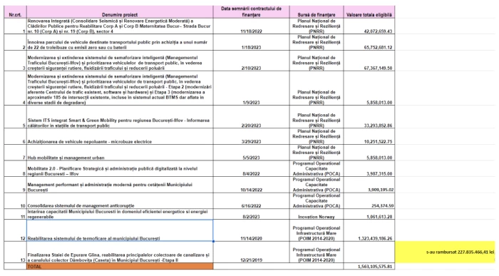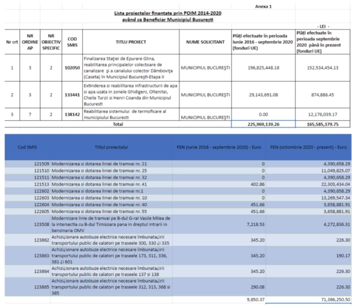 Astfel, în timpul mandatului Gabrielei Firea au fost atraşi aproximativ 45 de milioane de euro prin POIM şi 9.850 de euro prin POR. Este vorba despre plăţi făcute, nu de contracte semnate.