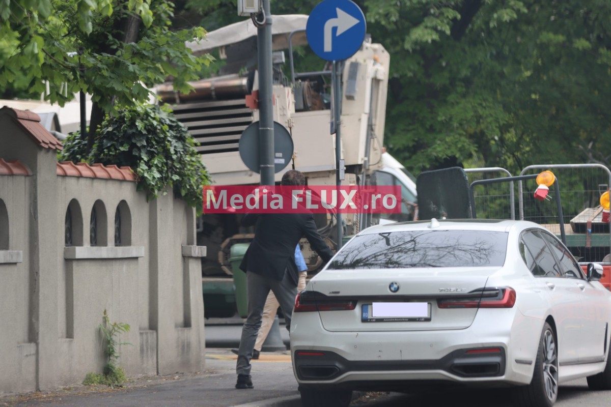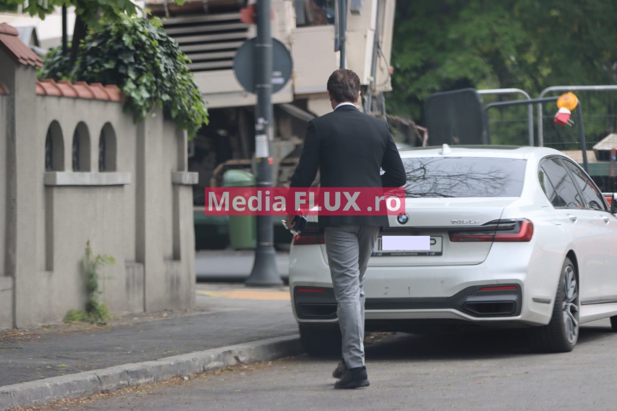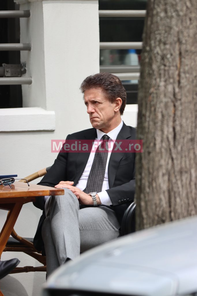 Vreme de câteva minute bune cei doi domni, Gică Popescu și un altul cam de același leat cu el, au pus țara la cale, fapt inspirat de mimica feței lor. În majoritatea timpului, fostul mare internațional român a fost îngândurat, și-a ascultat partenerul de discuție, a mai schițat un zâmbet două, dar nimic care să iasă din limitele seriozității pe care a afișat-o „Baciul” în cei peste 30 de ani de când are reflectoarele aprinse în direcția lui. După ce au terminat ce au avut de discutat, cei doi bărbați și-au luat fiecare drumul lui, nu înainte de a se mai saluta o dată în momentul în care fostul fotbalist se pregătea să se urce în mașină.