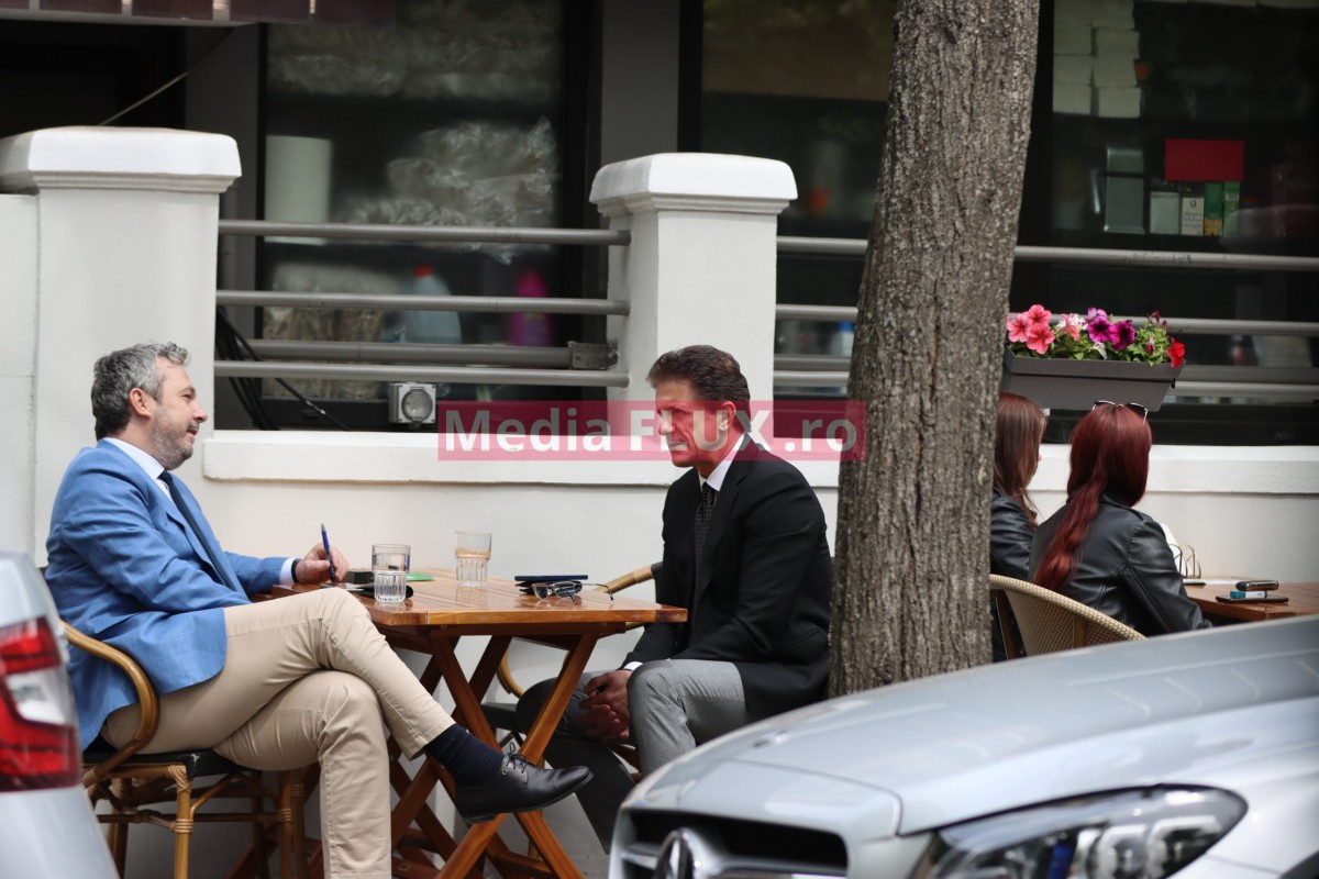 O situație similară a fost fotografiată de paparazzi mediaflux.ro zilele trecute atunci când fotoreporterii l-au zărit, la trotuar, în jurul unei mese de terasă, alături de un partener de afaceri. Este suficient să aruncăm o primă privire înspre cei doi domni ca să ne dăm seama că, iată, încă se mai fabrică costume de domni. La câte hanorace se perindă în ultima vreme pe PDF-ul Bucureștean, trăiam cu impresia că s-a închis fabrica de eleganță.