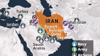 Statele Unite au forțe în întreaga regiune, inclusiv sediul avansat al Comandamentului Central la Al Udeid în Qatar și sediul Flotei a V-a a Marinei SUA în Bahrain.