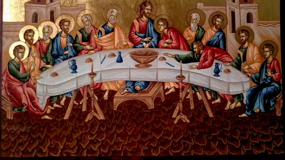 La Cina cea de Taină a fost instituită Sfânta Împărtășanie (Euharistia), prin cuvintele „Luați, mâncați… Beți dintru acesta toți…”.