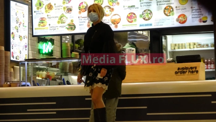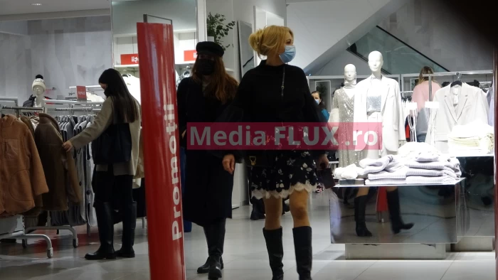 Dana Săvuică este însoțită la mall de o prietenă foarte bună, îmbrăcată din cap până în picioare, temătoare, pare-se, de gerul de afară. Doamnei însoțitoare nu-i lipsesc paltonul și geaca.