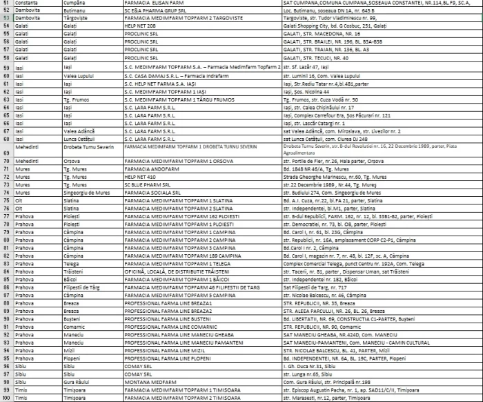 Dintre acestea, 12 se află în Capitală, 19 în județul Prahova, 13 în Cluj și câte 10 în Constanța și Iași.