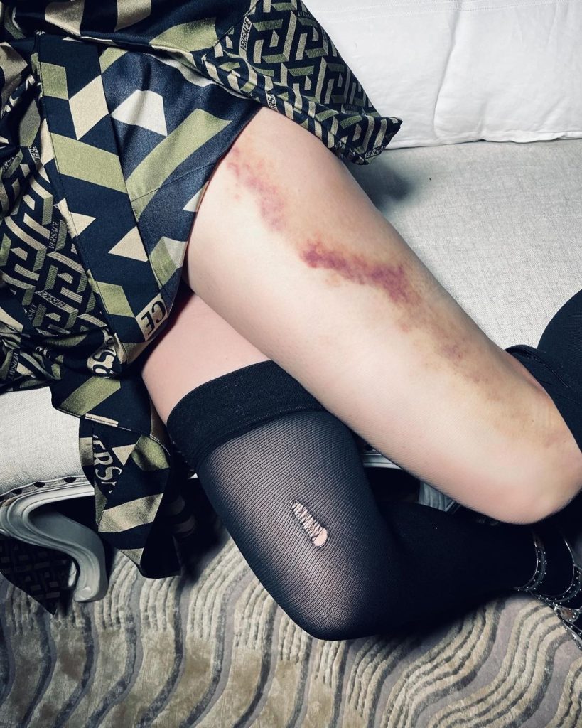 Artista, care în cei peste 40 de ani de carieră internațională, a făcut istorie în showbizzul mondial, le-a arătat urmăritorilor de pe Instagram care este noua ispravă pe care a făcut-o. Într-o circumstanță despre care vedeta nu a dat prea multe detalii, Madonna s-a ales cu o vânătaie de toată frumusețea, iar un asemenea spectacol nu putea să nu fie „prestat” pe social media. În dreptul fotografiei în care-și arată piciorul „burdușit”, Madonna a scris simplu: