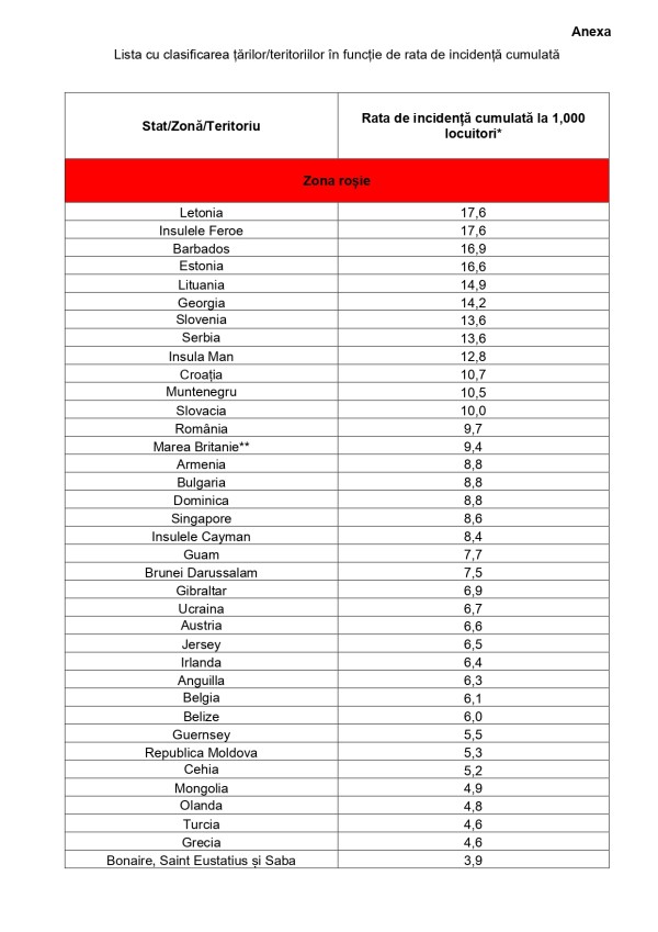 Comitetul Național pentru Situații de Urgență a actualizat lista a țărilor cu risc epidemiologic. Modificările vor urma în vigoare începând de duminică, 7 noiembrie.