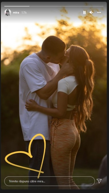 Cântăreața a distribuit o fotografie în care ea și Mario Fresh apar în prim-plan. Nu este vreun dubiu că artistul este în poză. Se poate observa de departe că este vorba de el, pentru că are pe gât tatuajul cu litera R, e tuns într-un anumit fel și poartă haine largi. Cei doi se sărută, artista l-a luat în brațe pe Mario Fresh, iar el o ține tandru de gât. Alături de imagine, Mira a desenat și o inimioară.