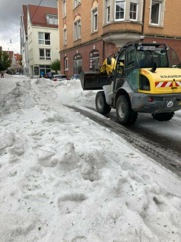 După o furtună deosebit de violentă, locuitorii din Reutlingen, Germania, au văzut pe străzile orașului plugurile de zăpadă. Acestea au scoase din garaje în plină vară pentru a îndepărta cantităţile enorme de grindină căzute în doar câteva minute.