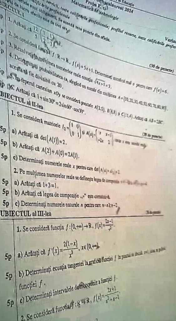 Pe rețelele sociale au apărut primele imagini cu subiectele de la Matematică şi Istorie de la Bacalaureat 2024, potrivit Știrile Pro TV.