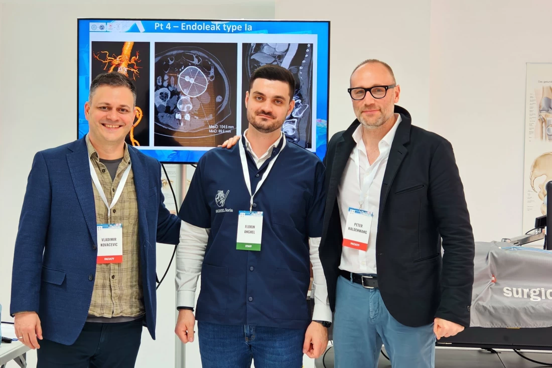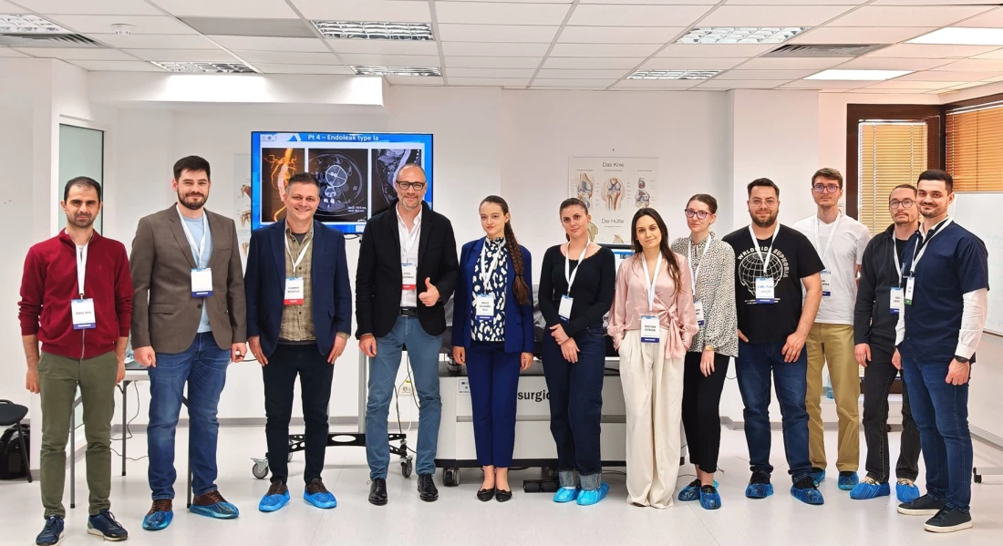 În paralel, medicii aflați la început de drum au aprofundat procedurile complexe TEVAR și EVAR (repararea endovasculară a aortei). Sub îndrumarea directă a unor specialiști de renume internațional, precum Dr. Vladimir Kovacevic (Serbia) și Assoc. Prof. Peter Haldenwang (Germania), tinerii medici au avut oportunitatea de a învăța secretele tehnicilor endovasculare si hibride care evită chirurgia deschisă, consolidând puntea dintre inovația europeană și practica medicală locală. Toate aceste workshopuri au fost posibile cu sprijinul Universității de Medicină și Farmacie Carol Davila, al Centrului de Inovație și eHealth, al Departamentului de Simulare Medicală și al Laboratorului de printare 3D ale UMF Carol Davila.