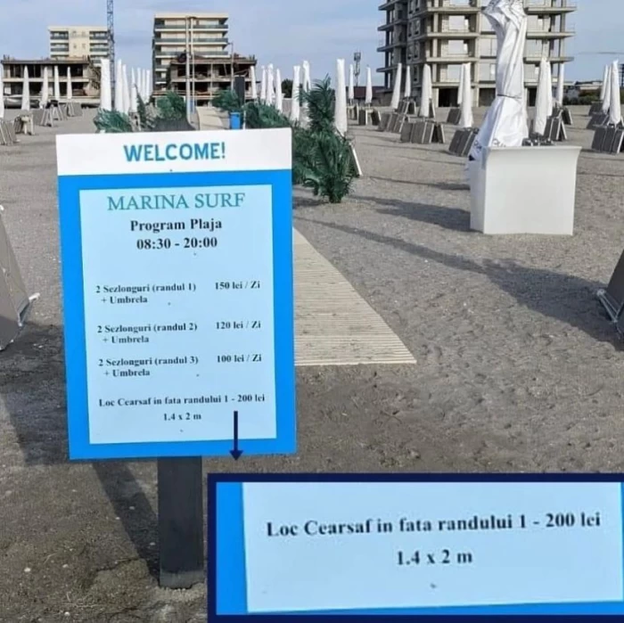 De exemplu, pe o plajă privată din Mamaia, să închiriezi un sezlong costă 150 de lei și să-ți pui prosopul în fața primului rând de sezlonguri costă… 200 de lei, în intervalul 8:30 – 20.00.
