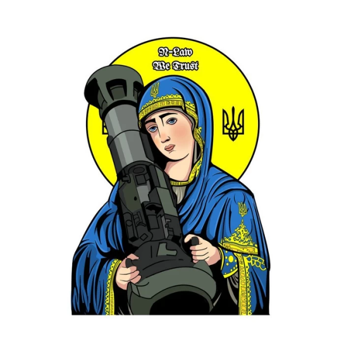 „Sfânta Javelin”, o reinterpretare a Mariei Magdalena, de altfel un simbol al mântuirii și speranței, ține în mâini o armă antitanc, devenind simbolul rezistenței Ucrainei în fața Rusiei.