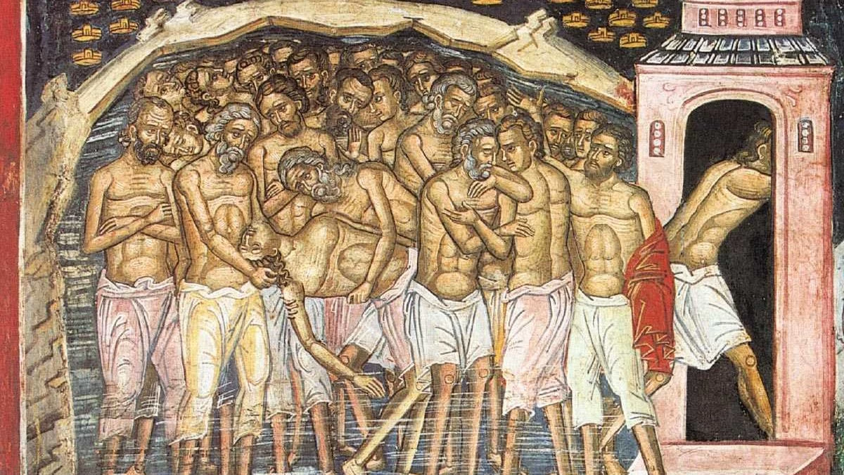 La miezul nopții, unul dintre cei 40 de mucenici a ieșit din apă din cauza gerului. Alergând spre baia caldă, pusă de cei ce slujeau idolilor, a murit. Cei rămași să îndure gerul au început să se roage: „Ajută-ne, Dumnezeule, Mântuitorul nostru, ușurează-ne sarcina și alină iuțimea văzduhului, că spre Tine nădăjduim, ca să nu ne rușinăm și să cunoască toți că ne-am mântuit strigând către Tine”.