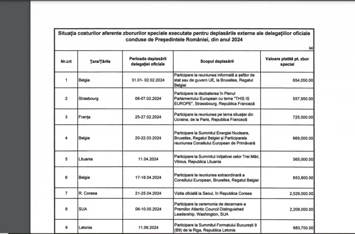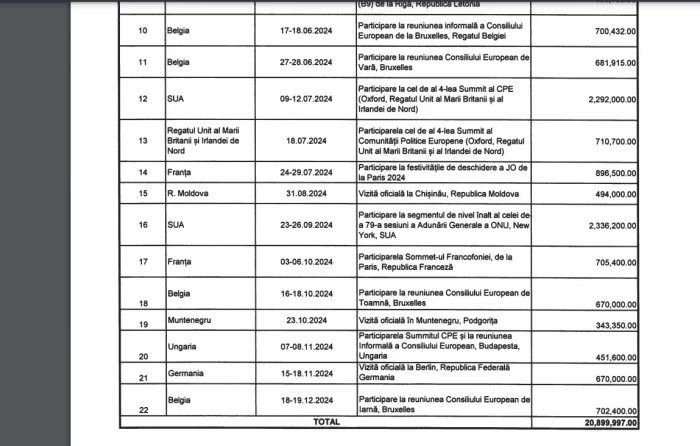 Cele mai costisitoare deplasări au fost în Brazilia, Chile și Argentina (7,5 milioane de lei) și în Japonia și Singapore (7 milioane de lei).