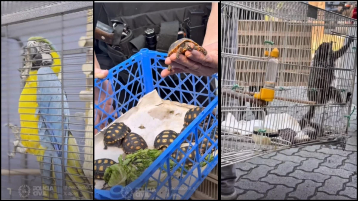 Păsări viu colorate, precum tucani şi papagali, cutii cu broaşte ţestoase, maimuţe şi un piton se numără printre cele peste 800 de animale salvate şi duse la o unitate centrală pentru a primi îngrijiri specializate.