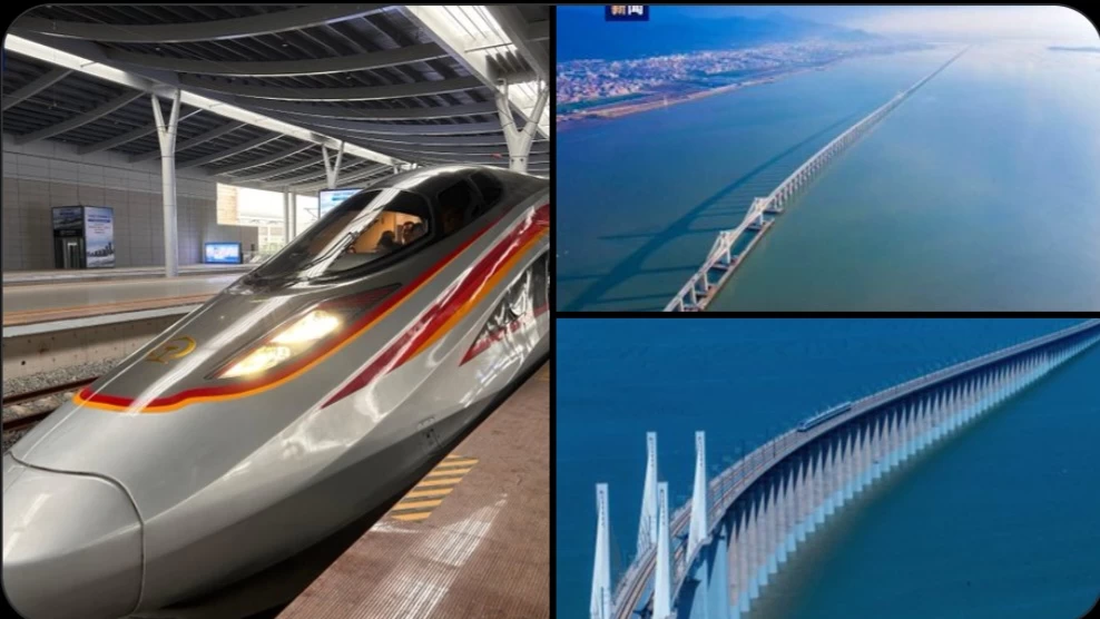 Trenul care circulă cu 350 km/h pe deasupra apei leagă orașele Zhangzhou, Xiamen și Fuzhou, toate trei situate în provincia Fujian.