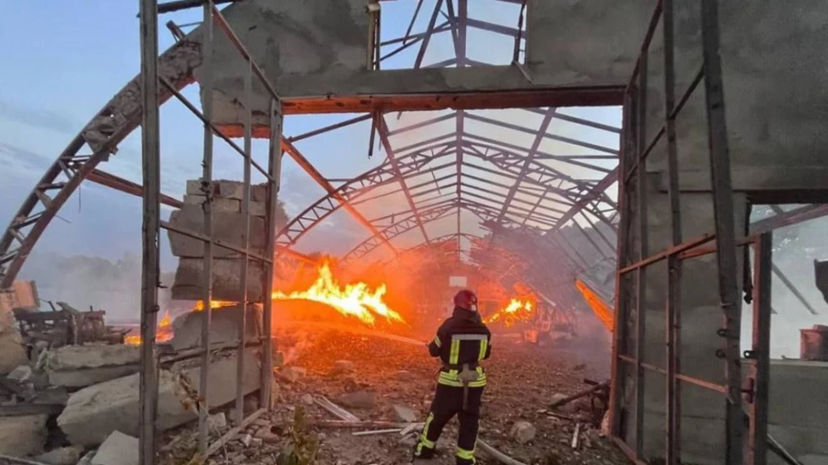 Mai multe clădiri, inclusiv depozite, au fost lovite, fiind avariate utilaje agricole și echipamente industriale. Mai multe incendii au izbucnit, de asemenea, în locuințe civililor, dar au fost între timp stinse. Nu s-au înregistrat morți sau răniți, conform sursei citate.