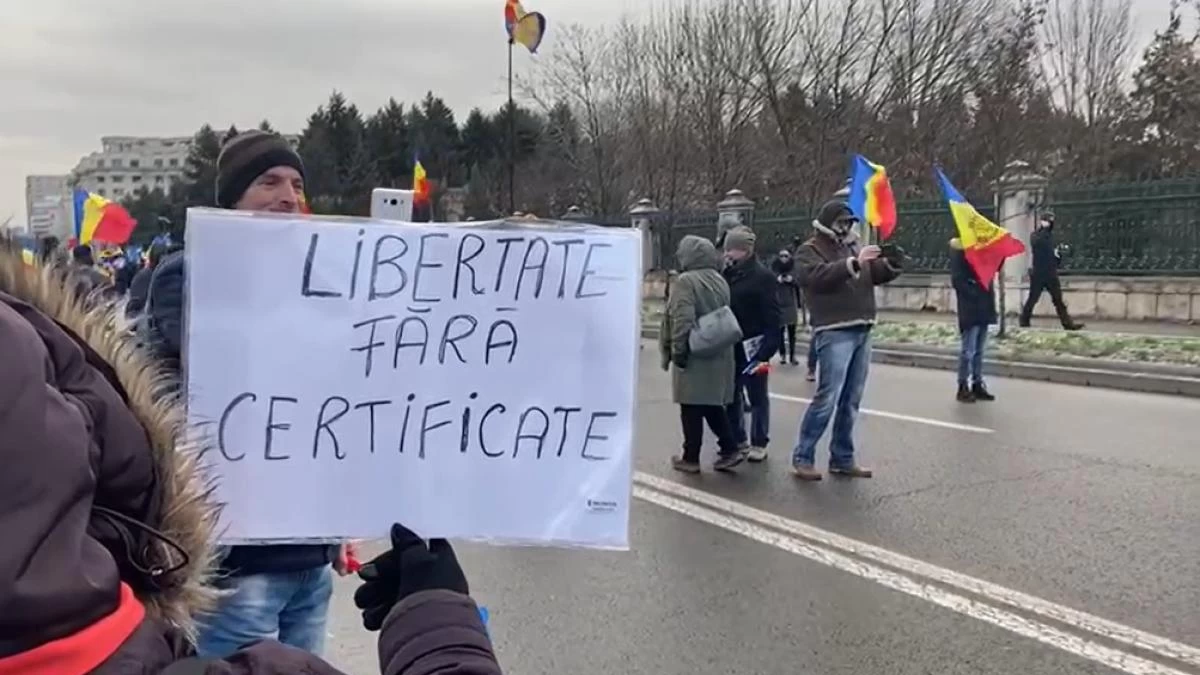 Un protest a luat amploare, marți, la Palatul Parlamentului atât la Camera Deputaților cât și la Senat, la intrările oficiale. Protestul este condus de liderii AUR. Oamenii se opun introducerii certificatului verde la locul de muncă.